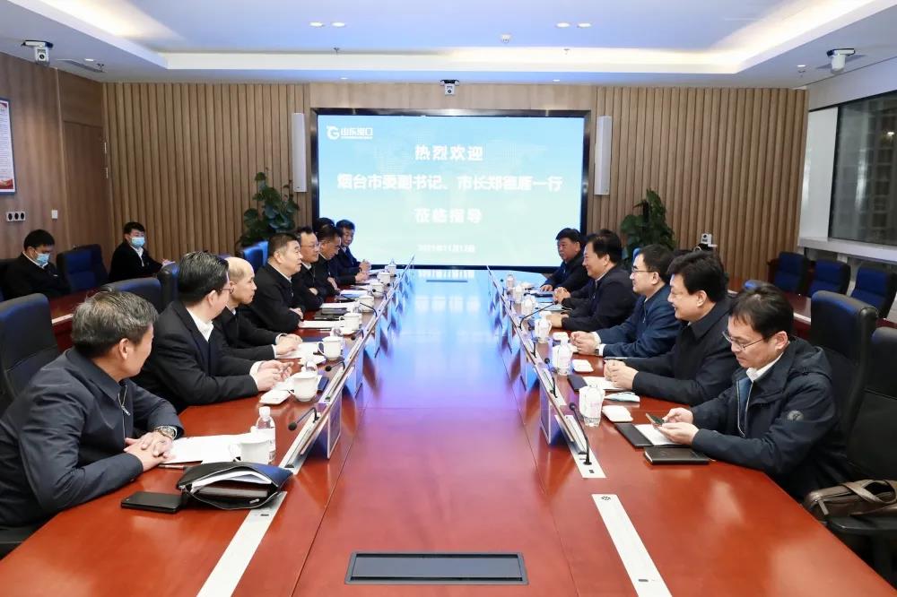 在座谈交流中,郑德雁感谢山东港口对烟台市的支持,他说,烟台市依港而立、因港而兴,山东港口烟台港是支撑烟台发展的最强力量。山东港口一体化改革以来,为烟台港注入强劲动能,有力助推了烟台市经济社会发展。未来,希望山东港口更好发挥服务区域经济发展的枢纽平台作用,提升烟台市的物流平台集聚和辐射带动能力,支持烟台在贸易、金融、物流等领域的发展,更好衔接日韩,服务“一带一路”。烟台市也将全力支持、放大港口资源优势,与山东港口联手促进烟台经济社会快速发展。